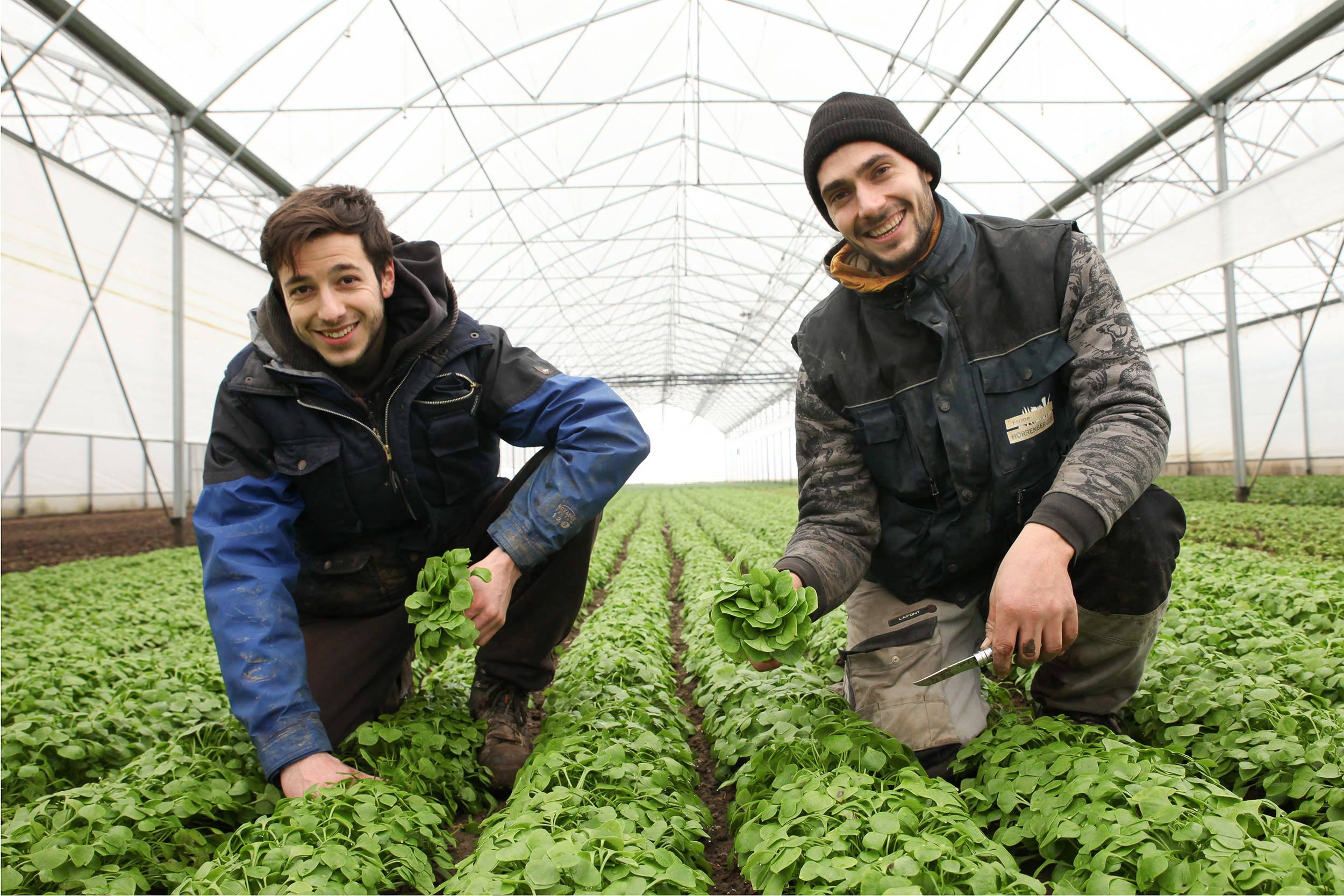 À l’abri dans les serres, mâche, pourpier, épinard… affrontent l’hiver protégés du grand froid pour vous assurer des légumes frais jusqu’au retour du printemps.